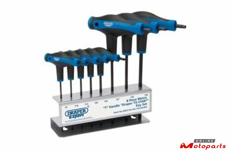 High leverage key set with Draper TX-STAR® long arms and security Draper TX-STAR® end short arms. Manufactured from chrome vanadium steel hardened and tempered. Soft grip handles for extra comfort. Supplied with a wall mountable steel storage rack. Display carton.