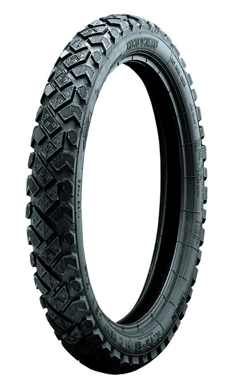 A Dual Sport tire for Mopeds. Great for heading down the street or unpaved surfaces. The compound is soft enough to stick to the asphalt but will last the miles.