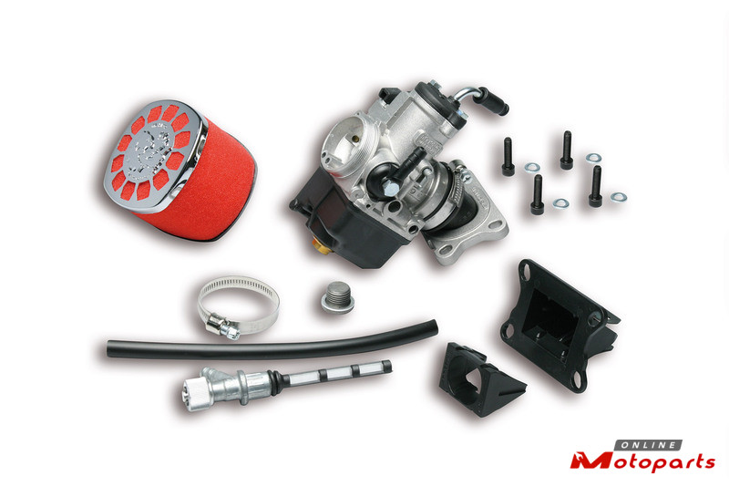 The greatest innovation of these new Malossi carburettor kits is the modular intake manifold. It allows to rotate the manifold into the flange according to the specific requirements of ones own vehicle, in order to identify which is the best angle for fitting the carburettor.