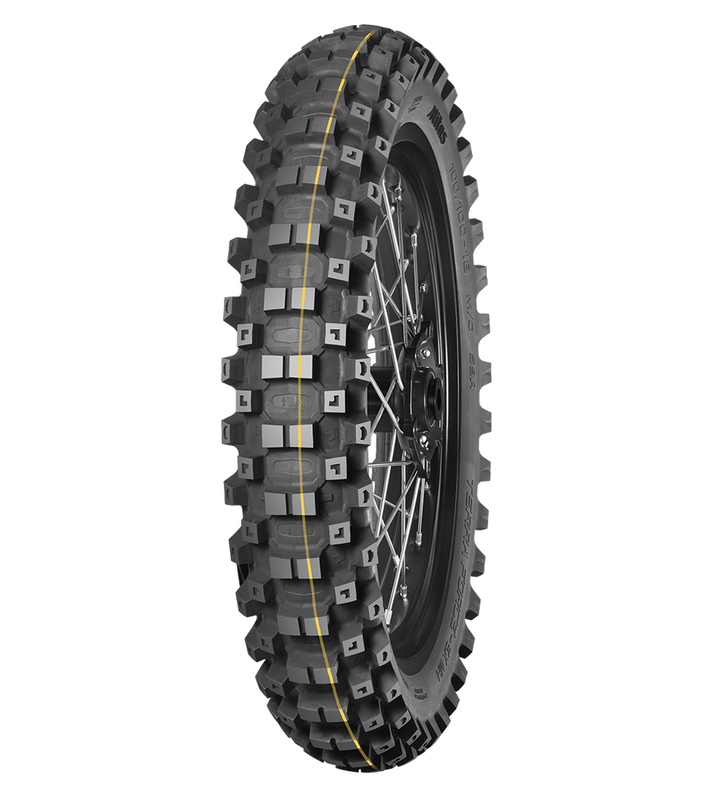 The TERRA FORCE-EX MH features refinements in tread, carcass and profile design, with a well spaced, aggresive knob design (~17 mm) that contributes to great traction and control on medium to hard pack soil. while the side knobs with a hooked profile aid acceleration. The reinforced carcass and a flexible sidewall helps it to absorb impacts and ensure maximum traction and directional stability.
