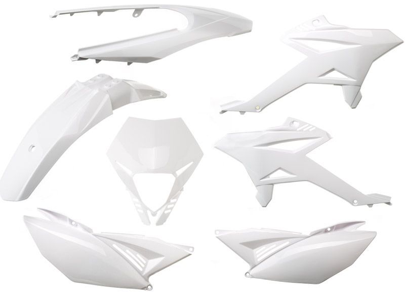 Includes tank covers, front fender, rear shells, rear fender and headlight plate.