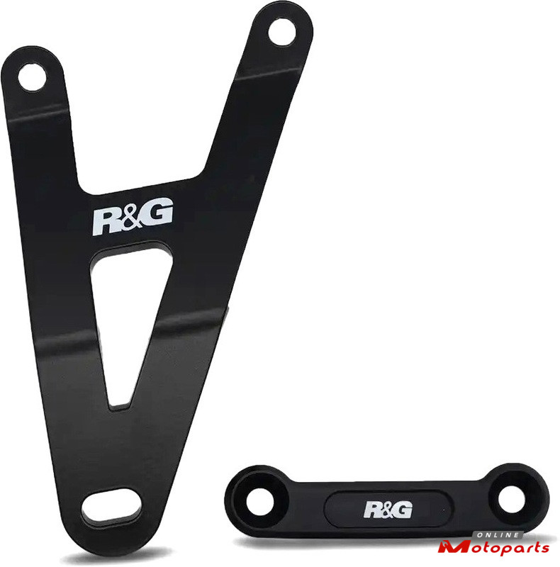 This Exhaust Hanger Kit includes a LHS Blanking plate and Exhuast hanger. The kit enables the removal of the pillion pegs for that race bike look, whilst also allowing for your exhaust to be properly supported with a stylish R&G Exhaust Hanger. Made from 6mm aluminium, featuring a modern design, the Exhaust Hanger really gives the bike a more aggressive racing look.