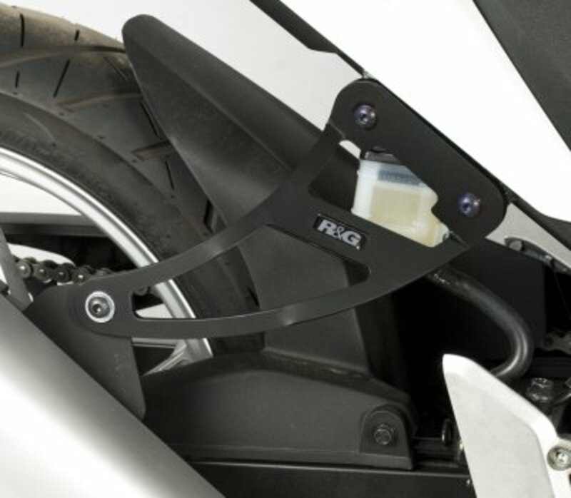 R&G Racing exhaust hangers give the bike a racing look by ditching pillion pegs.