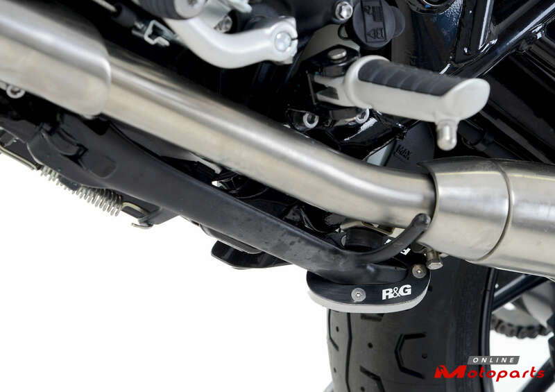 R&G Racing Kickstand Shoes bolt onto the bottom of the sidestand, to enlarge the originalâs footprint by up to 100%, significantly spreading the load placed upon it, to help prevent the stand âpiercingâ the ground. Despite this enlargement, the Shoe does not affect ground clearance or interfere with the chain run during normal riding.