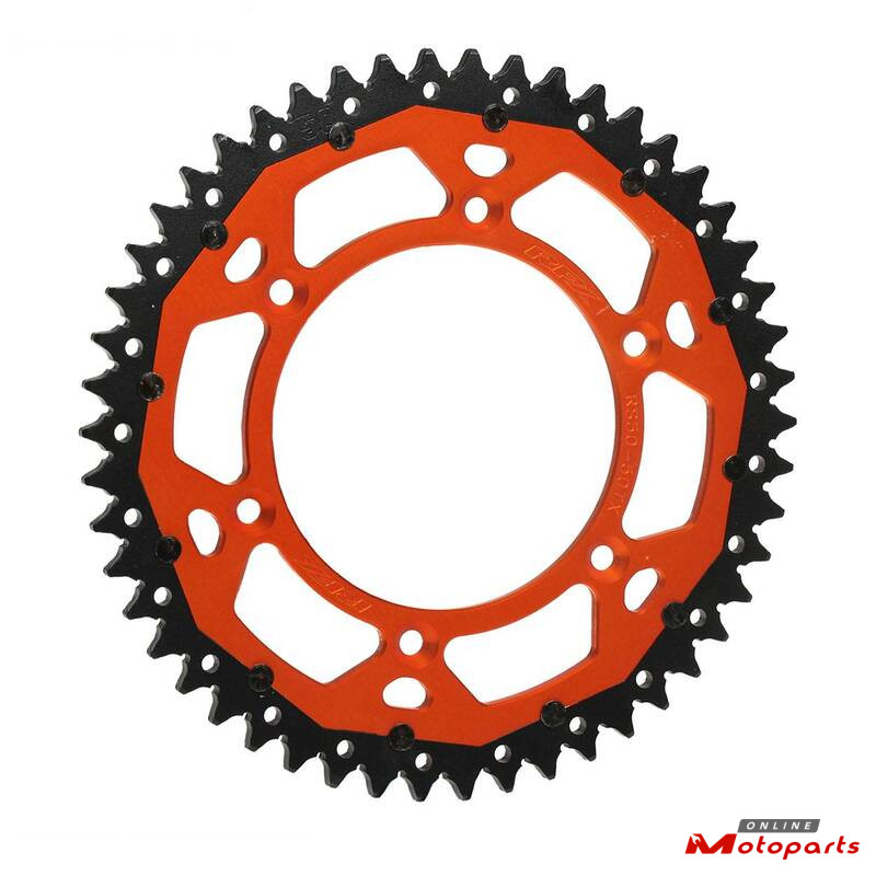 The dual ring design gives the ultimate sprocket performance, reduced weight thanks to a 7075-T6 aluminium centre and long lasting teeth life thanks to the high carbon steel outer.