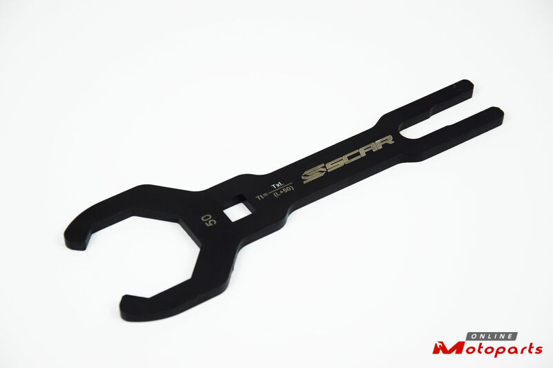 Ã50mm / 8-point fork wrench for Showa, used to install and remove the fork cap on closed-cartridge models, and to maintain the shock absorber rod when installing and removing the expansion cap.
