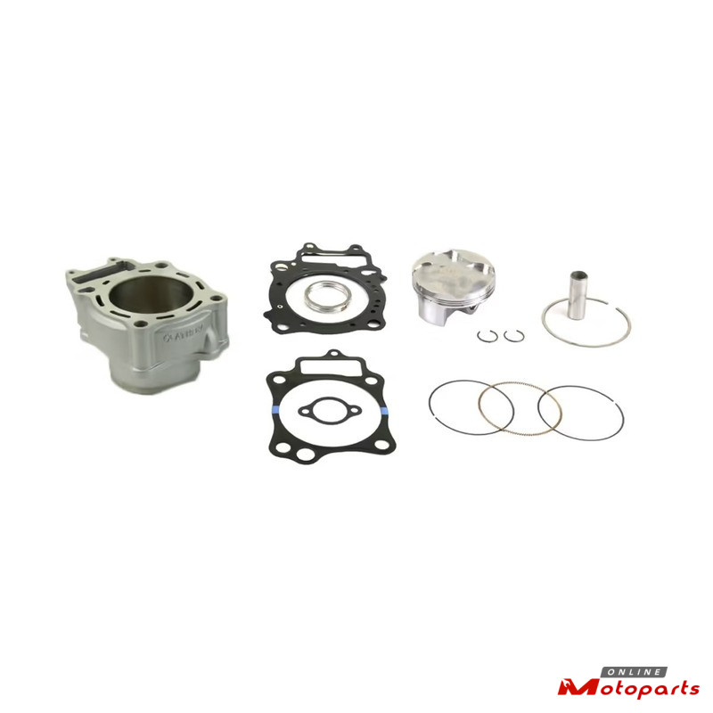 The kit includes the high-quality aluminum cylinder with standard bore, the complete piston with the piston pin and rings, and all the necessary gaskets.