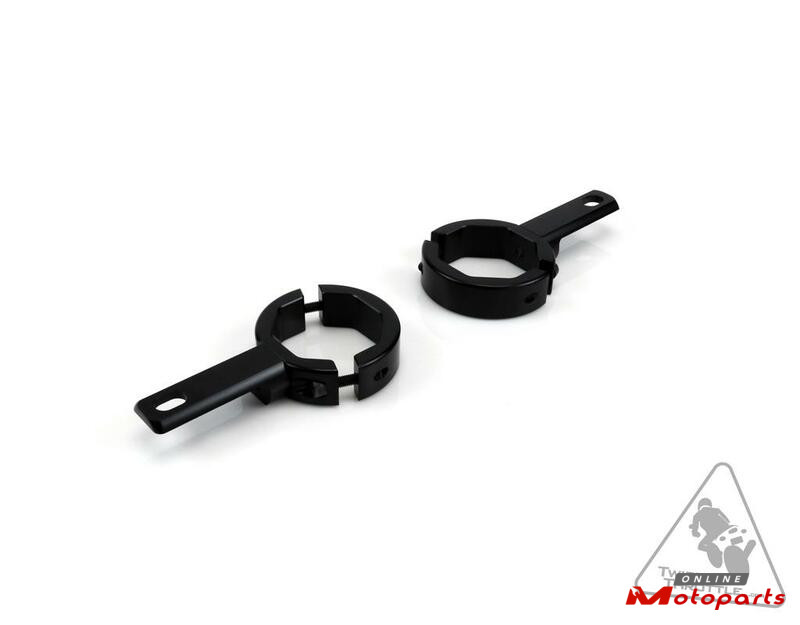This DENALI Fork Tube Light Mount Kit allows fitment of any DENALI LED Light Kit to conventional forks, or any tube 39mm - 49mm in diameter. These light mounts have a unique octagonal inner profile that allow the clamps to securely grip a wide range of tube diameters and include an optional, fully rotatable mounting shelf to create a super versatile and robust light mounting solution.
