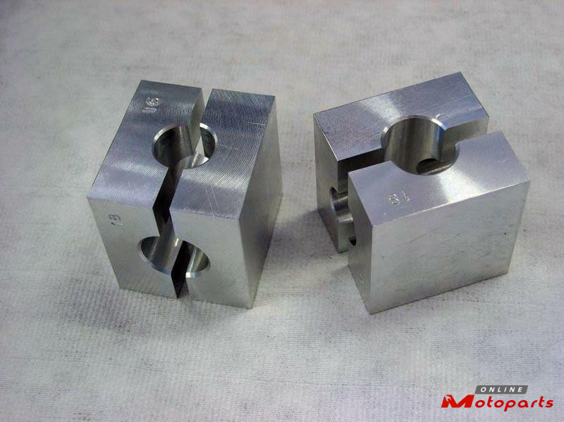 Piston rod clamps to hold the piston rod in a bench vice without damage.