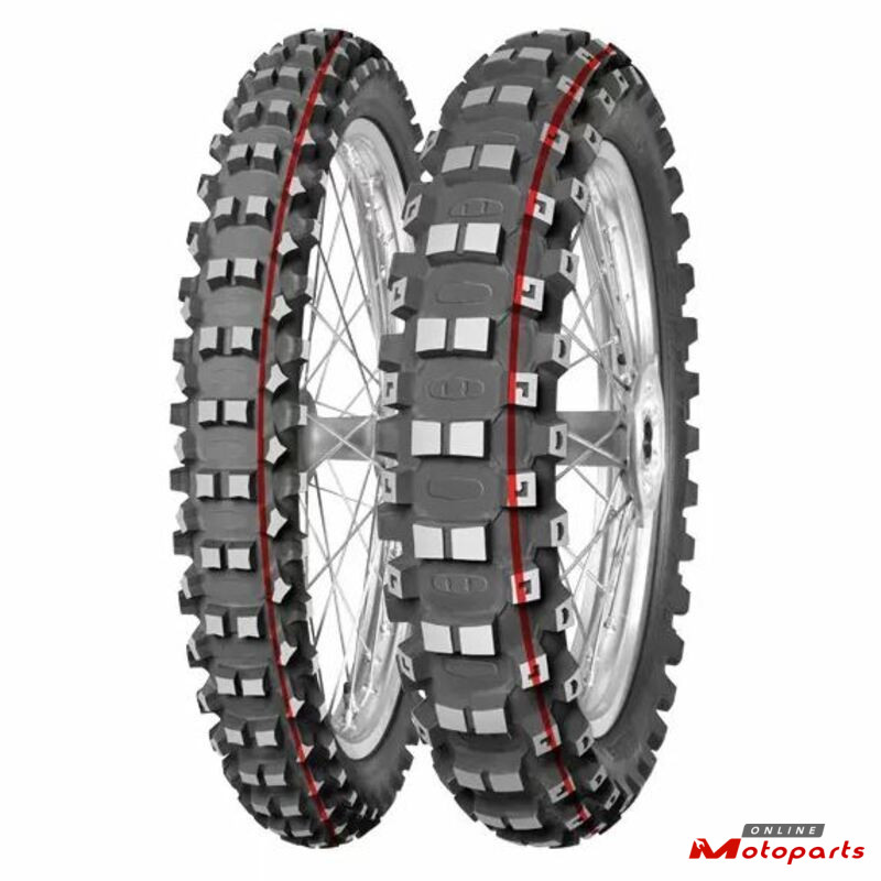 Medium-Hard Terrain - Identified by the characteristic red + green stripe: Motocross competition tire made from the softest tread compound for medium to hard terrain.