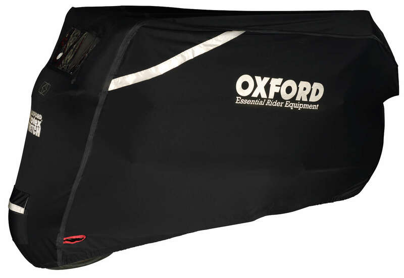The Oxford Protex Stretch cover is a premium stretch-fit cover, offering outdoor protection against rain, sun, snow, and dust. It includes a PVC window to hold a solar panel charger.