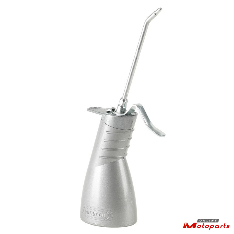 Zinc oiler equipped with straight spout aluminium, length 135mm and double-acting brass pump.