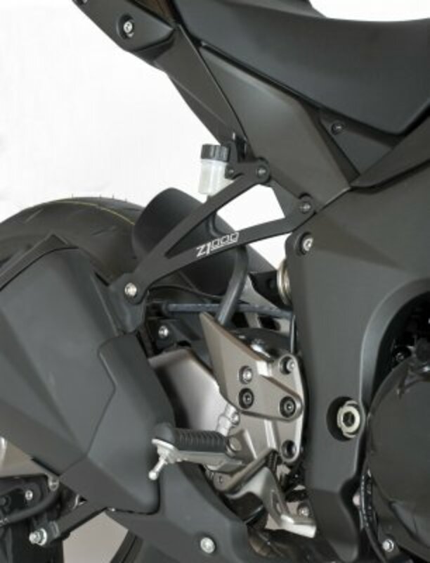 R&G Racing exhaust hangers give the bike a racing look by ditching pillion pegs.