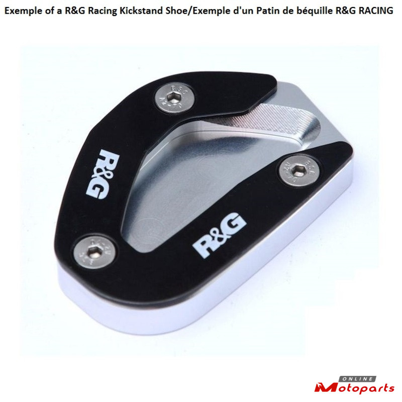 R&G Racing Kickstand Shoes bolt onto the bottom of the sidestand, to enlarge the originals footprint by up to 100%, significantly spreading the load placed upon it, to help prevent the stand piercing the ground. Despite this enlargement, the Shoe does not affect ground clearance or interfere with the chain run during normal riding.