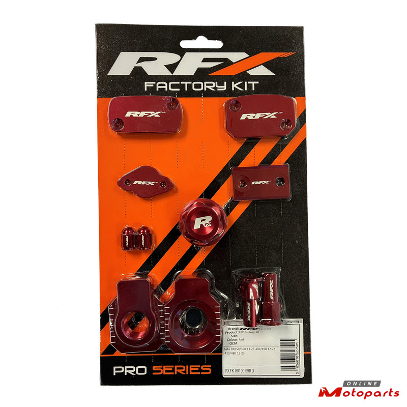 RFX Factory Kits give your bike the full factory look in one pack. Machined from aerospace grade aluminium, they're a perfect factory style replacement for your standard parts.