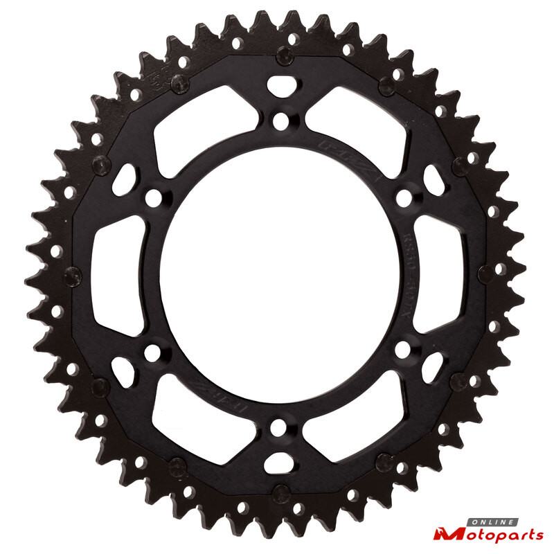The dual ring design gives the ultimate sprocket performance, reduced weight thanks to a 7075-T6 aluminium centre and long lasting teeth life thanks to the high carbon steel outer.