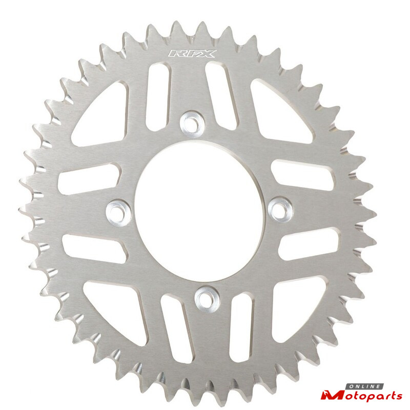 RFX Pro Series Rear Sprockets are CNC Machined from 7075 aerospace aluminium and feature mud clearing grooves for a longer chain and sprocket life. RFX sprockets are colour coded for the make of bike and also available in standard silver for each model of bike.