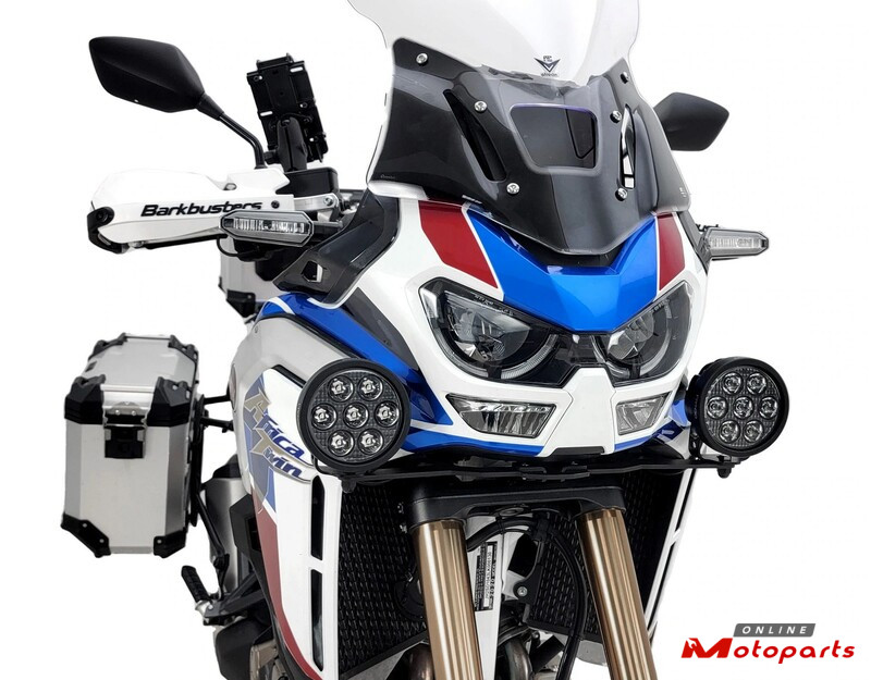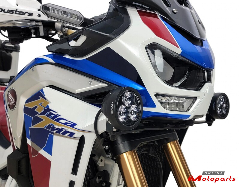 This vehicle specific driving light mount allows you to mount any DENALI driving light in the optimum location on your Africa Twin 1100 Adventure Sports model, right below and to the outside of your headlight. The design features a heavy-duty steel bracket assembly that securely mounts to the Africa Twin 1100 fairing support. The bracket has an M8 mounting hole for the light pods and includes all necessary mounting hardware.