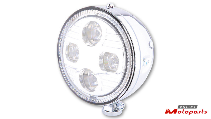 The innovation for your safety – the model ATLANTA is a headlight equipped with 4 power LEDs, which is available in the following variants: In a high quality black metal housing with black insert or in a high quality chrome plated metal housing with chrome plated insert. The LED technology for low beam and high beam produces a symmetrical, daylight-like light for optimal visibility, E-approved.