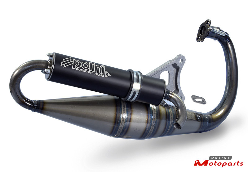 New POLINI Team 4 EEC approved Exhausts for Piaggio, Peugeot and Minarelli, vertical or horizontal, engines have been designed with the technology earned from Polini Italian Cup Races.