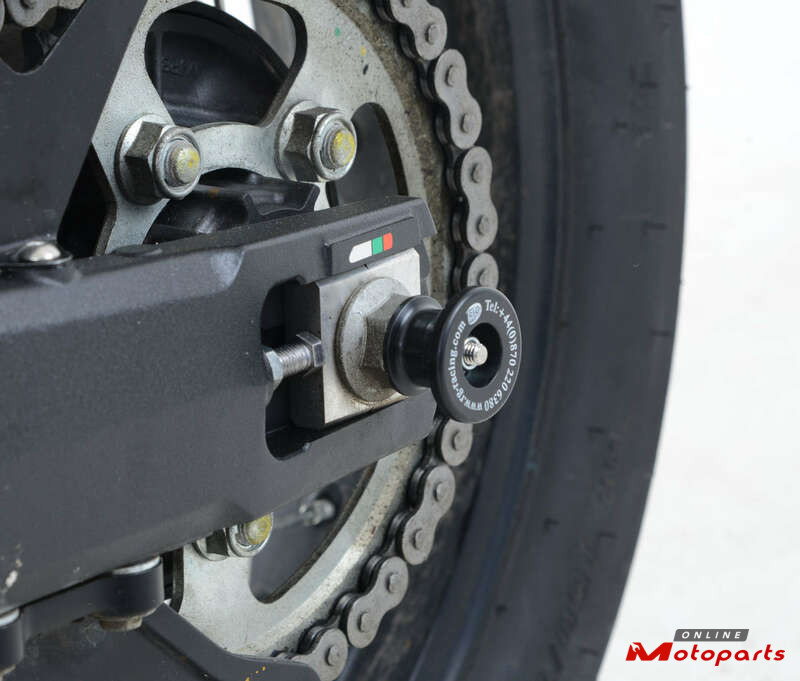 Swingarm protectors are fitted by means of a stainless steel bar passing through the rear spindle. They can be fitted easily and are designed