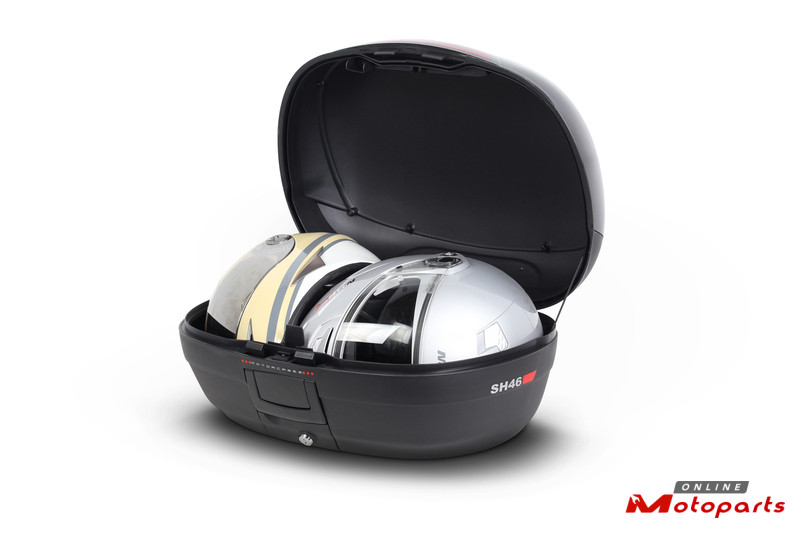 The SH46 is very resistant thanks to the high quality & robust reinforced polypropylene composite material that it is made of. The case is resistant to extreme temperatures and protects the interior cargo hold from impacts and also from any form of precipitation such as rain and snowfall. A double locking system keeps its cargo hold safe and secures the case to the bike.Â