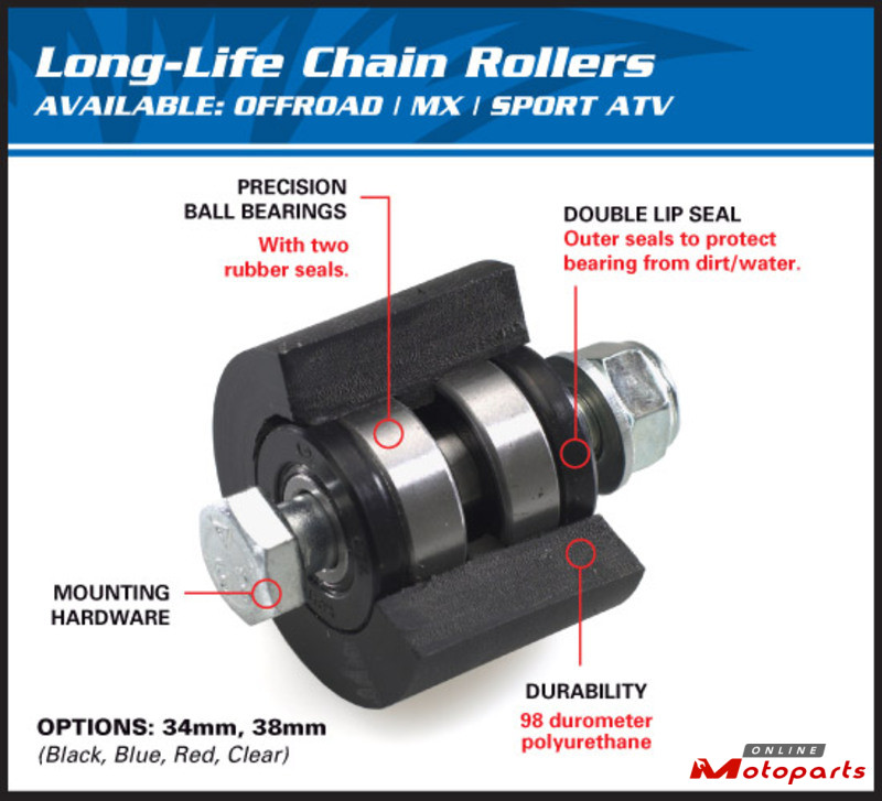 To insure a great longevity, All Balls chain rolls are made with polyurethane raw material; there are composed of 2 bearings and seals.