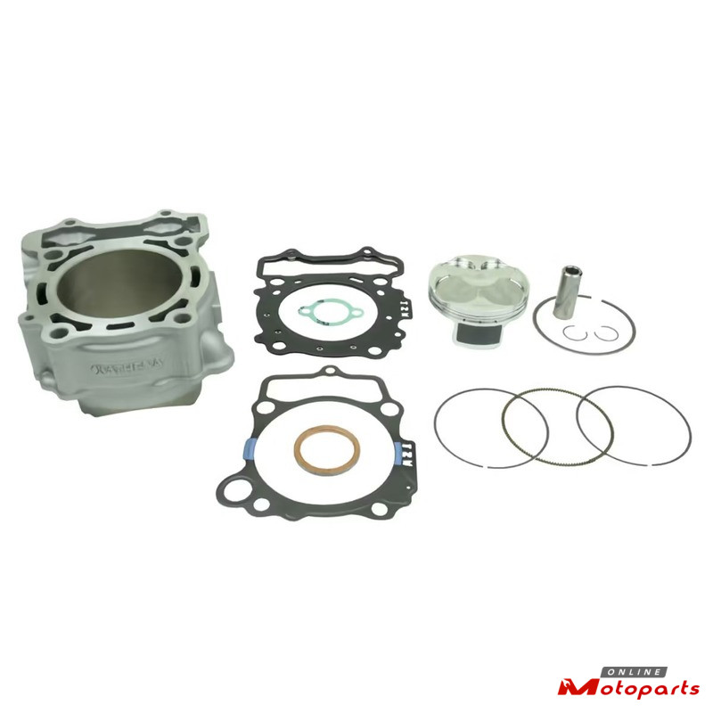 The kit includes the high-quality aluminum cylinder with standard bore, the complete piston with the piston pin and rings, and all the necessary gaskets.
