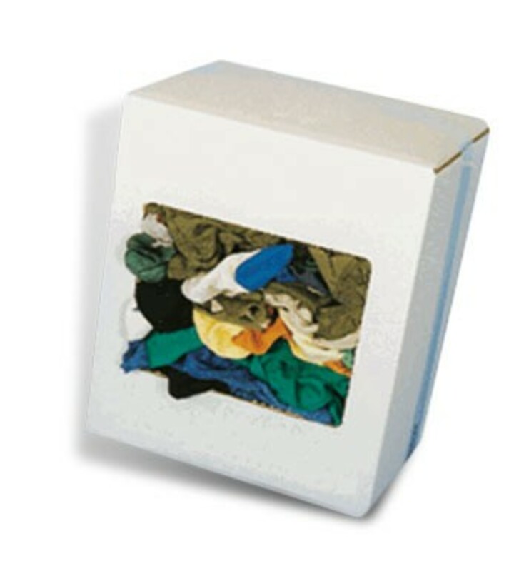 Cardboard containing 10Kg of rags made from color t-shirts.