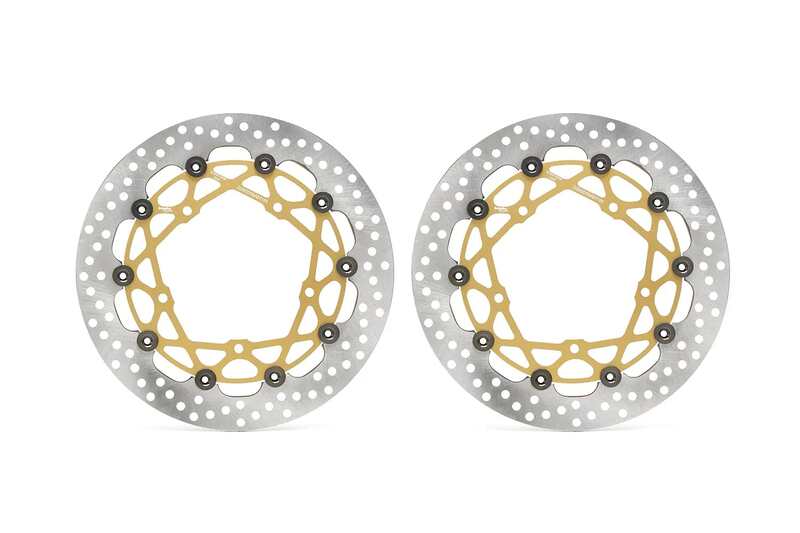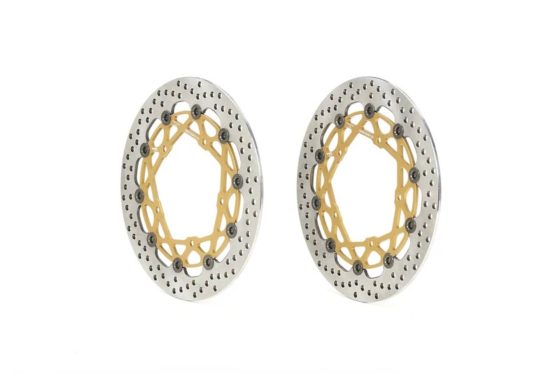 SuperSport discs are available with a braking surface width of 34 mm and thickness increased to 5,5 mm; they are interchangeable with the original discs without requiring any modifications. These fully floating discs are made from heat-treated steel capable of withstanding extreme thermo-mechanical stress, with an aluminium alloy bell machined from the billet.