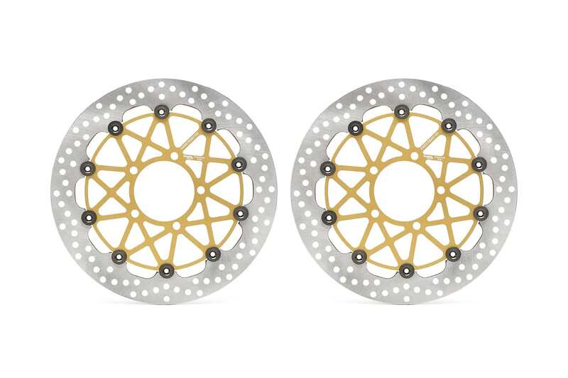 SuperSport discs are available with a braking surface width of 34 mm and thickness increased to 5,5 mm; they are interchangeable with the original discs without requiring any modifications. These fully floating discs are made from heat-treated steel capable of withstanding extreme thermo-mechanical stress, with an aluminium alloy bell machined from the billet.