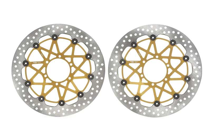 SuperSport discs are available with a braking surface width of 34 mm and thickness increased to 5,5 mm; they are interchangeable with the original discs without requiring any modifications. These fully floating discs are made from heat-treated steel capable of withstanding extreme thermo-mechanical stress, with an aluminium alloy bell machined from the billet.