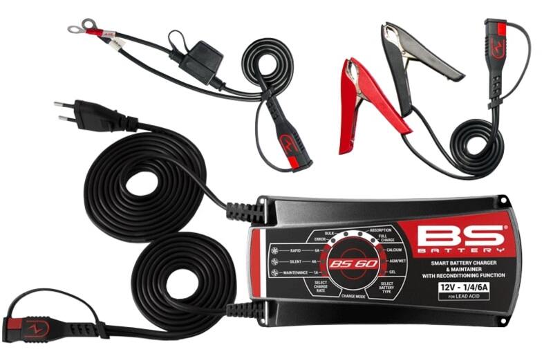 Designed for lead acid batteries, BS Battery Charger BS 60 is a 12V smart battery charger and maintainer rated at 1A/4A/6A and suitable for batteries up to 120Ah.