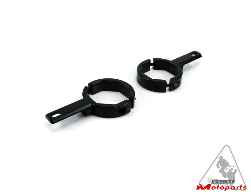 These clamps are intended for motorcycles with exposed inverted forks such as enduro, dual sport, and naked motorcycles. The clamps allow lights to be mounted in front of, or to each side of the fork tubes to ensure clearance with fairings and other accessories. The clamps are also perfectly sized to clamp to the lower legs of conventional forks, typically found on many cruiser and standard motorcycles.