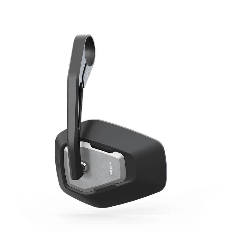 Rising and flat trapezoids create the futuristic design of the HIGHSIDER pro ESAGANO-RS mirror series, which thus picks up the design language of modern motorcycles. The base body of the mirror head, made of high-quality plastic, encloses the distinctive inlay, which is CNC machined from aluminum. This symbolizes the design language of the ESAGANO product family and creates a unique recognition value with the rising and flat tapered geometries. The bead-blasted and matte black anodized surface of the aluminum contrasts with the surface of the mirror head, completing the image. The long handlebar end stem in aluminum embodies design and function. In this way, the forces acting on the mirror during travel are dissipated particularly effectively via binomial structures using tension and compression points. At the same time, this structure reduces the weight of the mirror stem and also creates a visually harmonious overall appearance. The handlebar end mirror can be mounted both standing and hanging on the handlebar. The mirror is mounted using the optically matching handlebar weight ESAGANO-LS with 12mm stem mount or a handlebar weight in an alternative design from our product range. If there is sufficient space, the mirror can also be attached directly to the handlebars via the supplied aluminum adapter rings