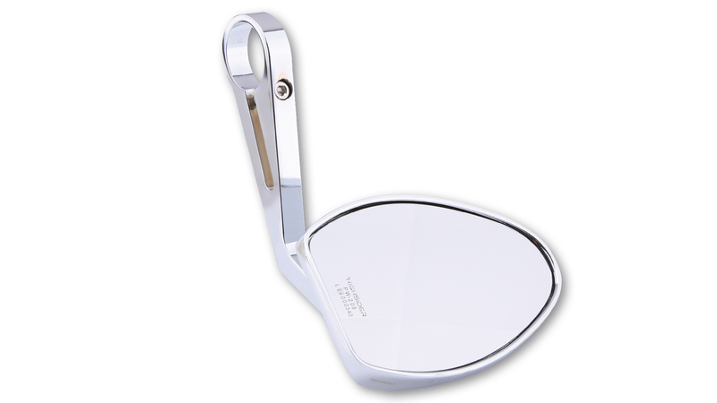 Bar end mirror in a sporty design with a head made of aluminum. Suitable for handlebars with an inner diameter of 12 to 21 mm, i.e. for most 7/8 inch and 1 inch aluminium or steel handlebars. Can be used for left and right side, E-approved.