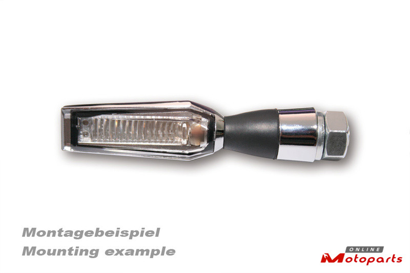 Aluminium spacer sleeve for almost all indicators with an M8 threaded bolt from HIGHSIDER pro. A slot in the sleeve facilitates the passage of the cables. Can be used either as a turn signal extension or as a spacer if the threaded bolt on the lamp holder should hit the inside of the lamp housing when attaching it to the lamp holder.