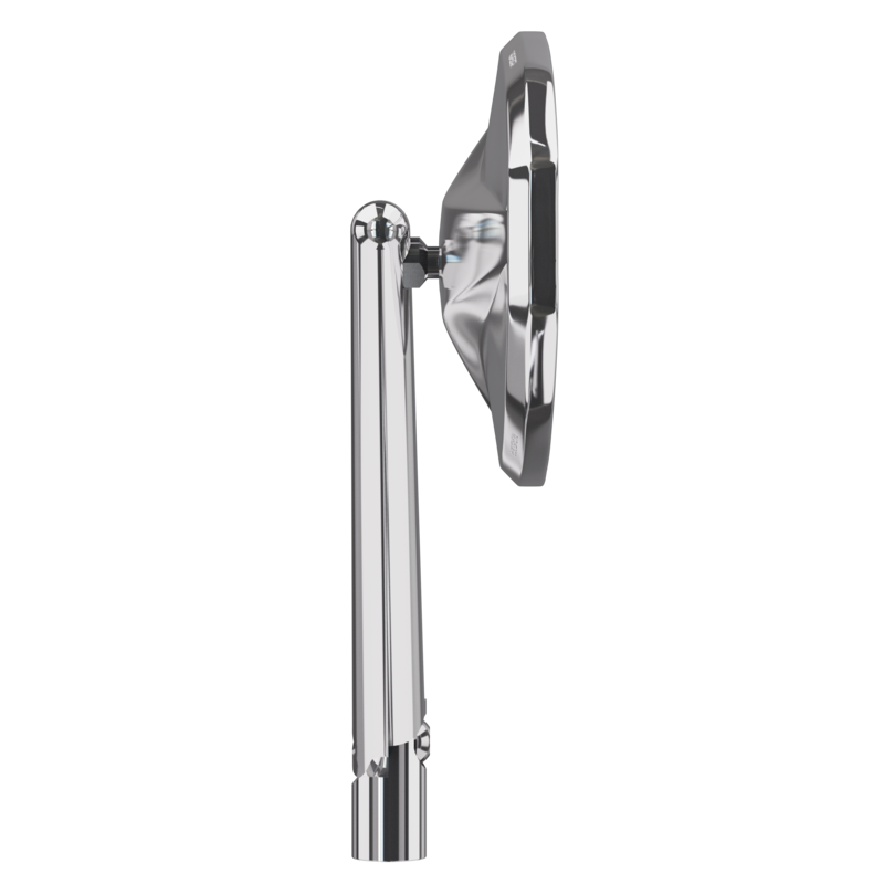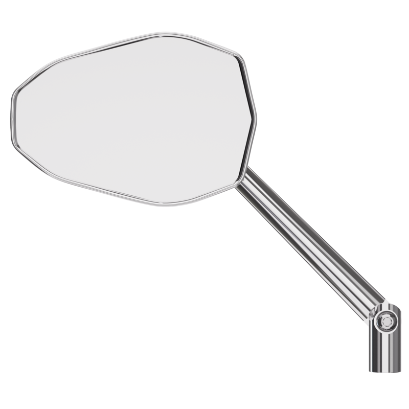 Elegant universal mirror with a chrome-plated aluminium head and adjustable stem. The use of a second joint on the stem provides additional adjustment options for your safety. Includes extra M10 x 1.25 mm adapter with left-hand thread for Yamaha. Can be used on the left and right side.