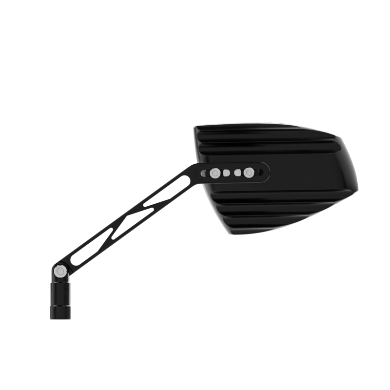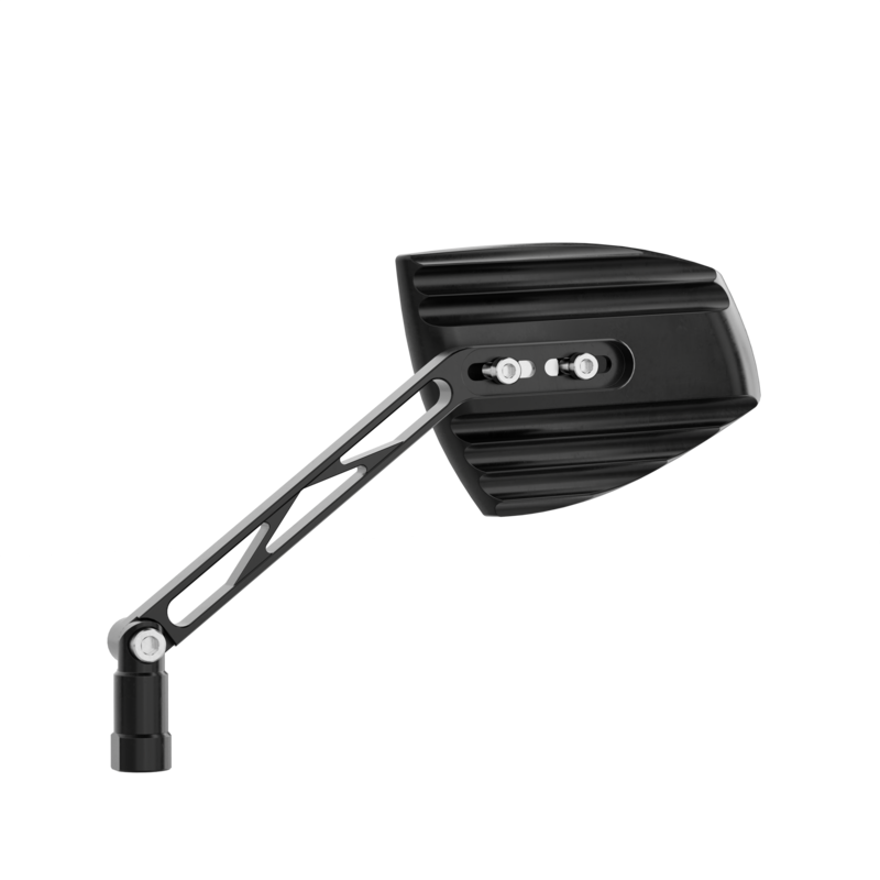 The HIGHSIDER pro Wave mirrors visually complement any motorcycle model in the colors silver, black, red, gold or chrome. Small colored accents between the mirror head and arm add color to your machine. The asymmetrical shape and the CNC milled lines of the case create both a modern and a classic look. The mirror head is supported by an aluminium arm, which is connected classically by M10x1.25 adapter is screwed into the handlebar fitting.