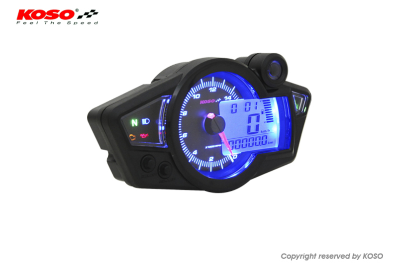 Just the right size and shape for your sport bike, naked bike or street fighter! With its illuminated needle and backlight the RX-1N is very easy to read even at night. This instrument features many different functions such as speed, odometer, tripmeter, RPM, shift light, temperature, indicator lights and many other cool functions. This gauge got everything you need to go on the street!.