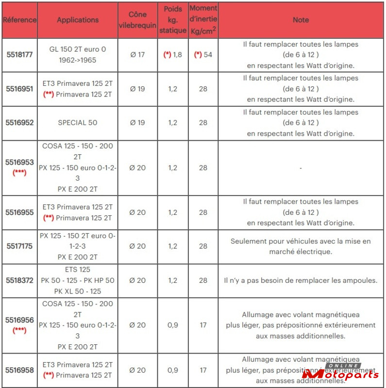 (*) Values refer to flywheel with magnets, additional mass and 6 connecting screws.