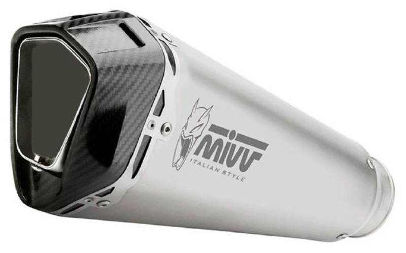 In addition to the shape, there are many details that make the style of this exhaust unique, such as the carbon cap, the double riveted perimeter bracket or the solid machined inlet bushing, to offer maximum coupling precision. ?This exhaust sports the characteristic Mivv logo created by laser technology.