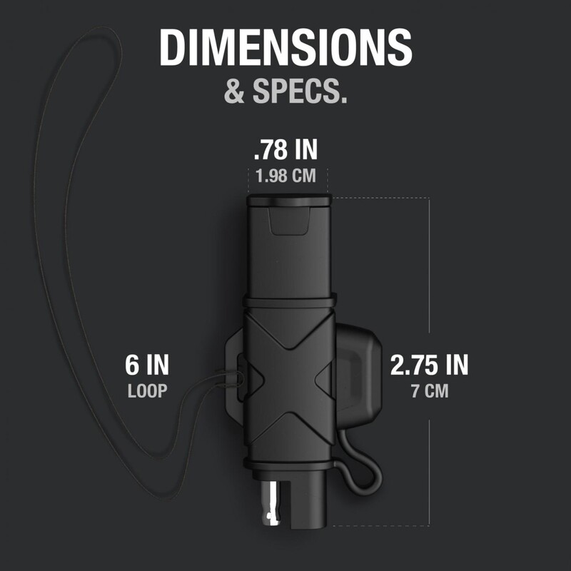 X-Connect SAE Adapter converts an X-Connect connector to a standard SAE connector commonly found on traditional battery chargers. Offers a convenient way to use existing SAE power adapters and accessories with NOCO Genius Battery Chargers.
