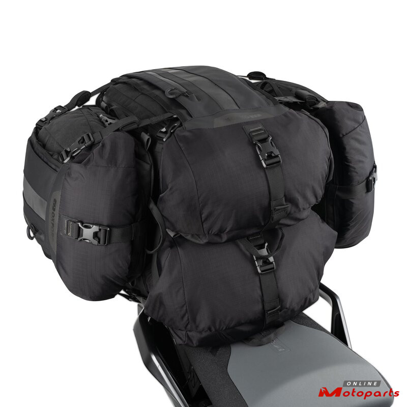 If you need to expand or contract your carrying capacity, you can quickly add or subtract a bag using its MODULAR LUGGAGE SYSTEM. The main compartments are always accessible even whilst mounted to your bike and four adjustable compression straps per bag ensure load stability.