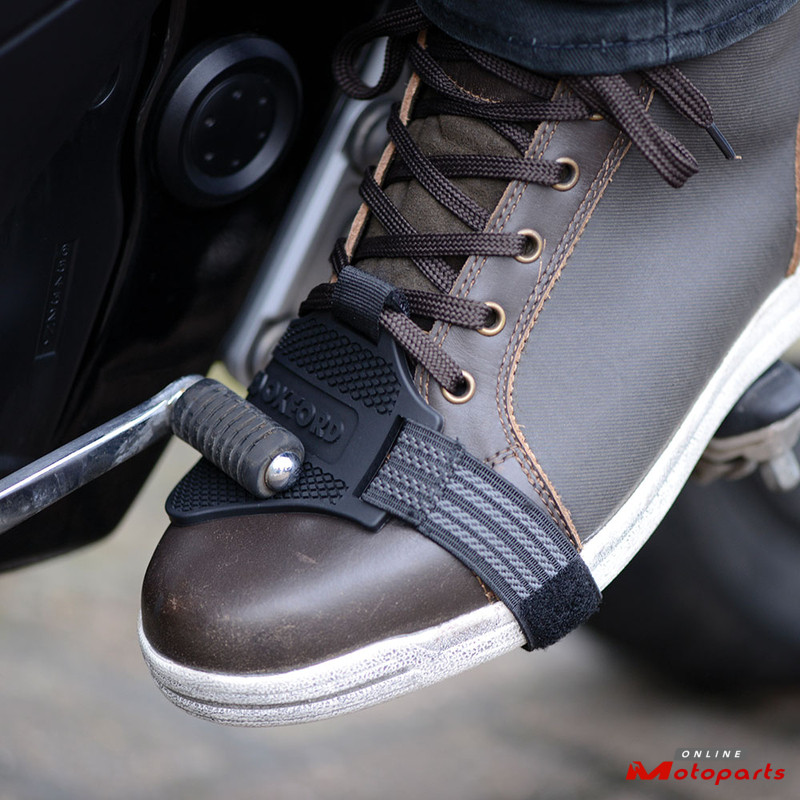This slip-on motorcycle boot shifter protector solves an age-old problem. It fits over any size boot and protects the boot fabric from being ruined by the gear shifter. Keep your shoes unmarked! These are an ideal solution for the urban commute and work perfectly to protect trainers as well as office shoes.