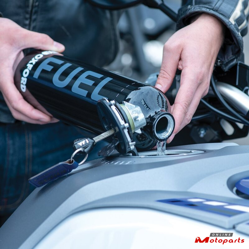 This leak-proof flask, available in 1L or 1.5L capacities, stores fuel safely and can be attached securely to your bike using Oxford's Bottle Stash.