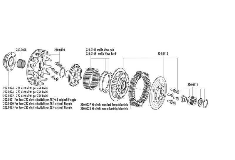 With the wide choice of spare parts in the catalogue it is possible to modify the Polini HT clutch For Race by easily replacing the primary gear.