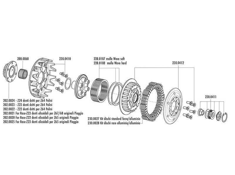 With the wide choice of spare parts in the catalogue it is possible to modify the Polini HT clutch For Race by easily replacing the primary gear.