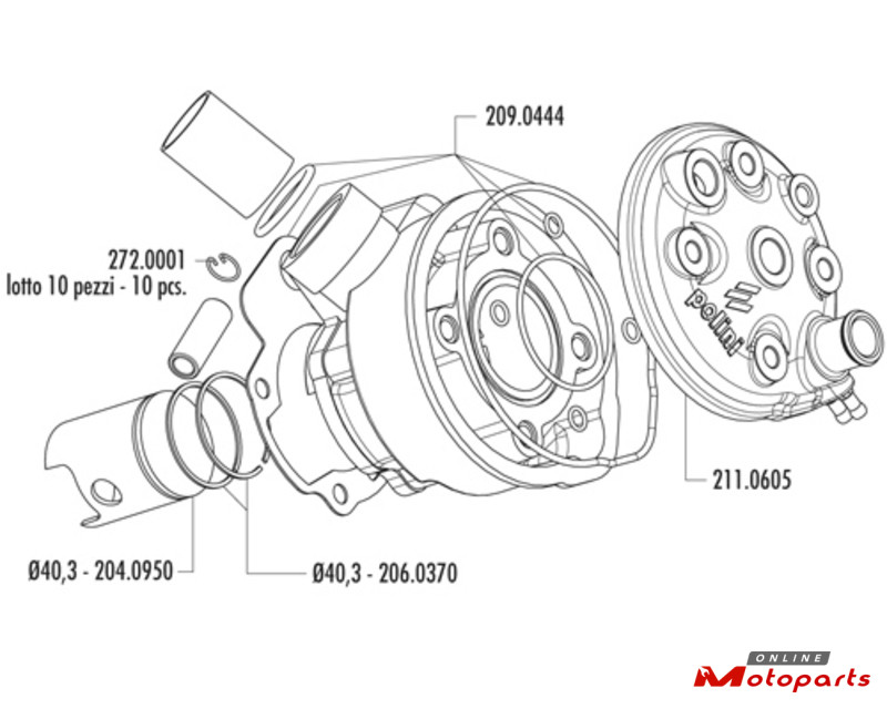 Polini top end assemblies for 50cc can be used to recondition the cylinder kit with an identical reliability specification to the manufacturer's original equipment. They are fabricated from high-quality materials using the manufacturer's skills in the area.
