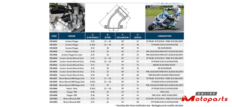 Swivelling intake manifold Piaggio 2-stroke 19-24mm